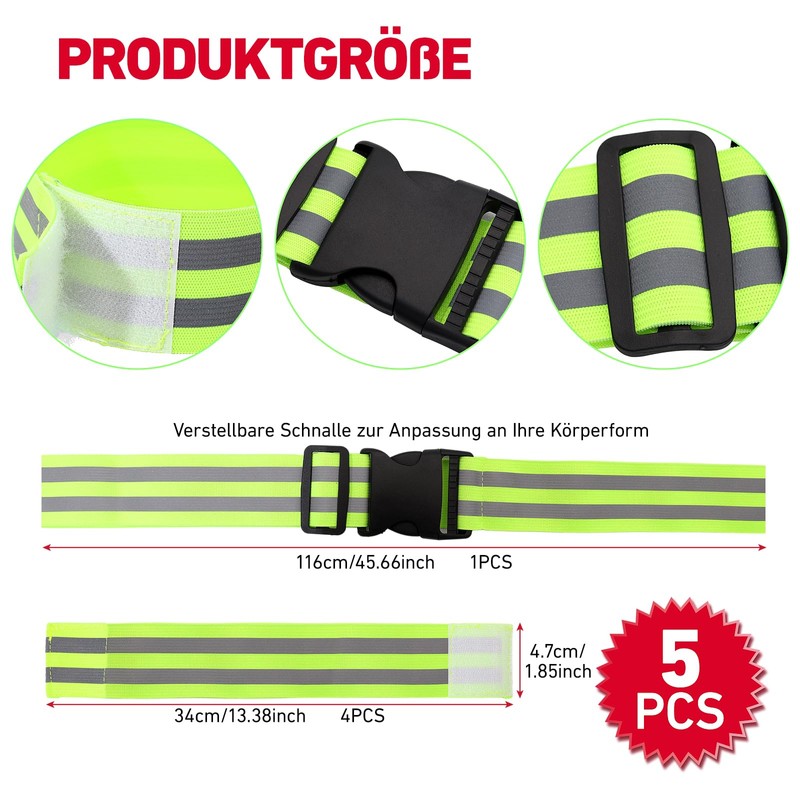 - Reflective band set: reflective band set includes 1 reflector belt and 4 reflector bracelets to ensure maximum visibility of your body, which is particularly important in the dark, so you are well protected at night and during sports.