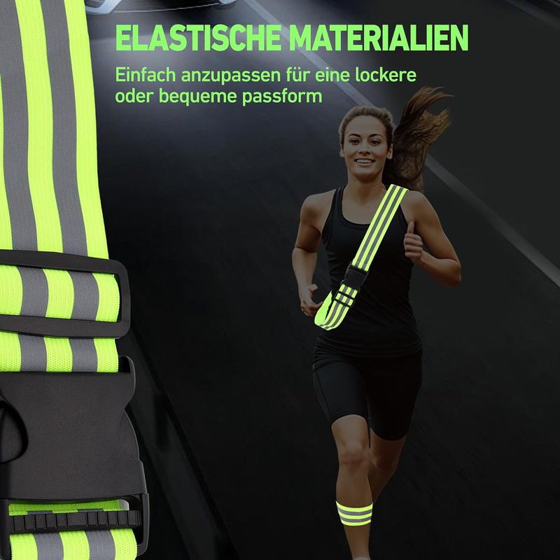 - Easy to wear: With the quick release buckle on the waistband, you can wear the reflector straps in seconds and not only hang around your waist, but also cross over your shoulders. Thanks to the elasticity and Velcro fasteners of the reflective tape, this reflective tape can be adjusted to any body shape, so you can easily get in and out, and it can also be combined with a variety of garments.