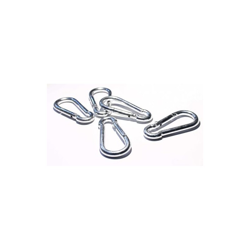 - Box contents: 5 carabiner hooks with snap lock mechanism; 8.0 x 80 mm; opening: 11.5 mm; load capacity 230 kg, breaking load 460 kg