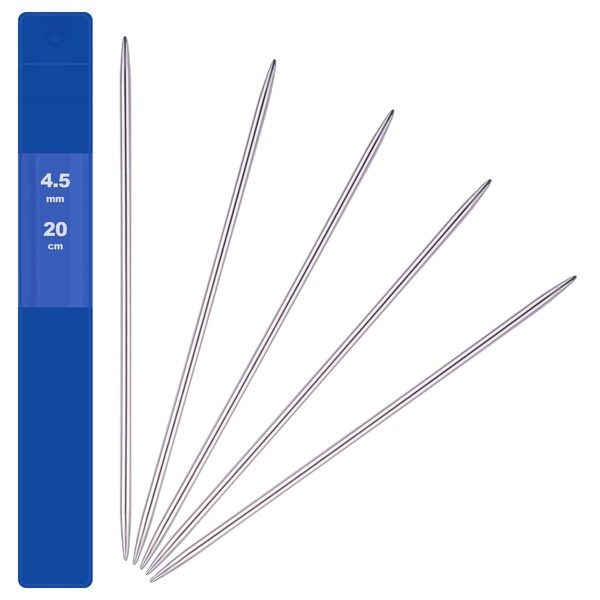 Pack of 5 Needles 4.5 mm Stainless Steel Knitting Needles Set, Sock Needles for Hats, Socks, Gloves, Hats, Scarves, Pet Sweater, Double Tips, Knitting Needles, Beginners, Smooth, Robust and Durable