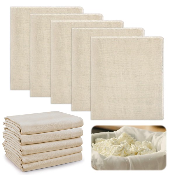 Pack of 5 Reusable Straining Cloth, 50 x 50 cm, Cheesecloth, Reusable, Washable, 100% Cotton, Unbleached Linen Cloth, Multi-Purpose Cheese Cloth from Tofu, Cheese, Fruit Juices, Draining, Refration