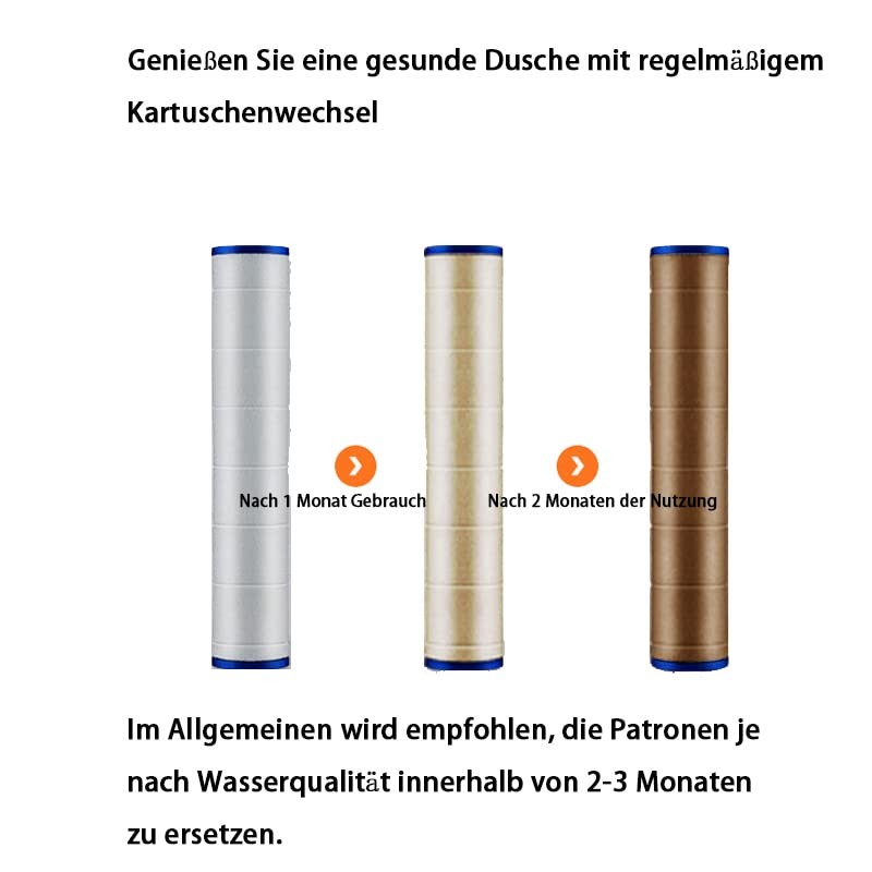 - Replacement intervals: We recommend changing the hand shower filter every 2-3 months depending on the water quality.
