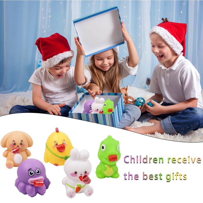 - 【Fun Design】5 cute designs: bunny, octopus, chicken, puppy and crocodile. When you squeeze the toys, they not only spit out their tongue, but also make cute squeaking sounds as if they were interacting with you. These toys are not only cute, but also bring fun and energy to your daily life