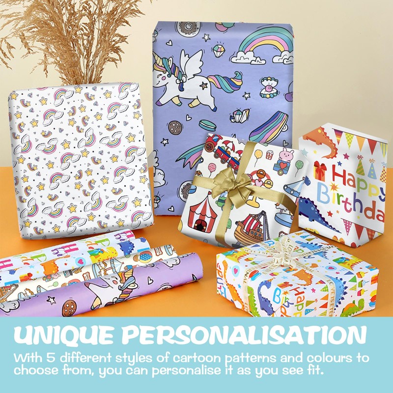 2. Cute cartoon gift wrapping paper offers different types of cartoon patterns and colours to choose from, so you can personalise it according to your needs.