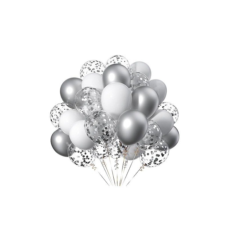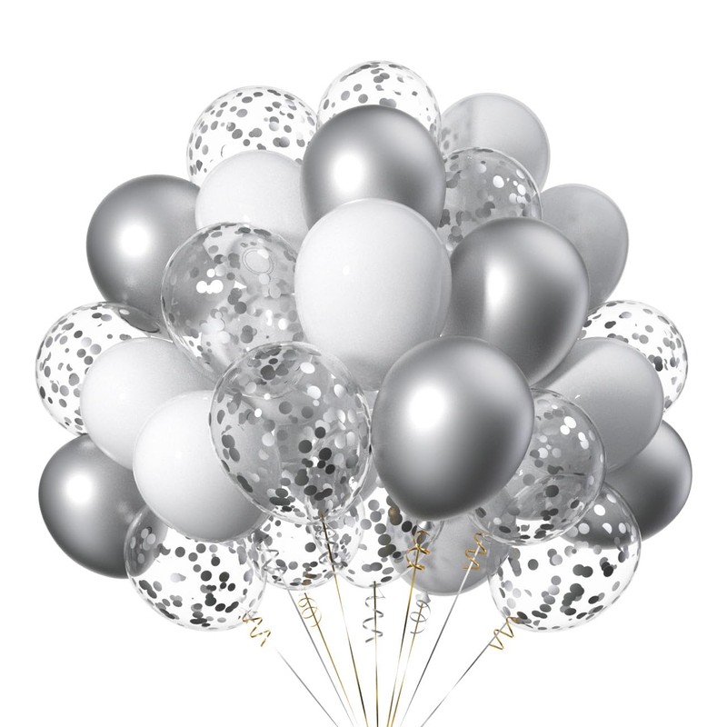 - Package includes: 18 silver balloons and 18 white balloons, 14 confetti balloons (silver)