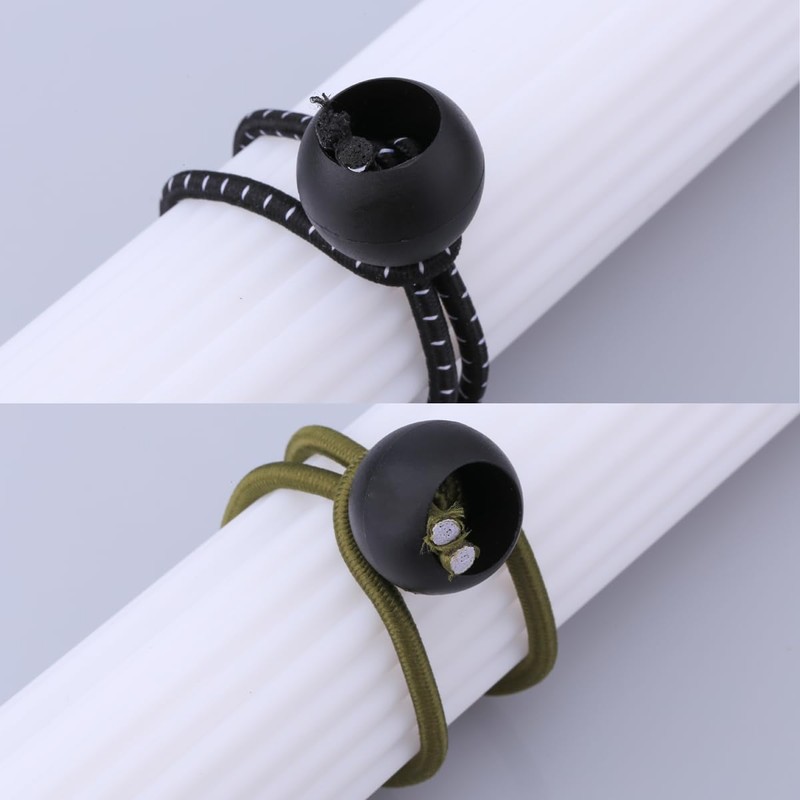 - Easy installation: elastic straps with ball are easy to adjust and remove. Pass the elastic ring through the eyelet, pass the rope through the hook and then pull the ring onto the plastic ball, which is easy to use and secure.