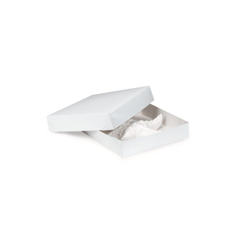 - Boxes have a double lock bottom with a tuck top lid. Interiors will vary. 2-piece, high-quality, gloss white gift boxes with telescoping lids are 100% recycled and a great value! Expandable for best fit! Excellent for fine china. Heavy duty. Wide range of sizes available for larger items requiring extra strength and support.