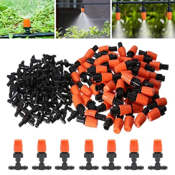 - Watering Kit: includes 50 micro droplets atomizer sprinkler heads and 50 T-shaped three-way hose connectors, total 100 pieces.