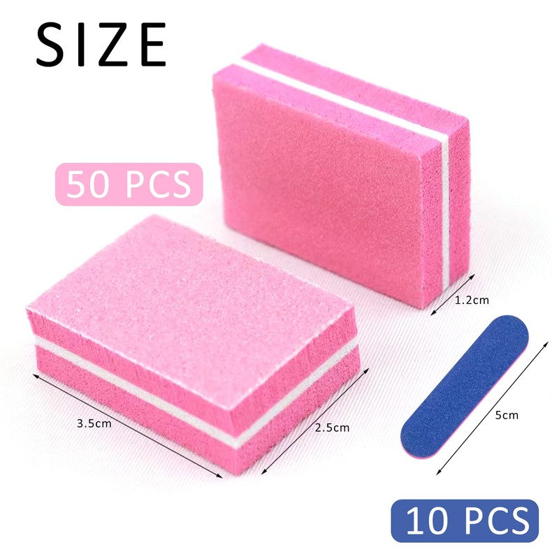 - The package includes: you will receive 50 pink nail buffers with a size of 3.8 x 2.7 x 1.2 cm; 10 pink and blue nail files with a size of 5 x 1.3 cm. Enough quantity to meet your daily use and replacement needs.
