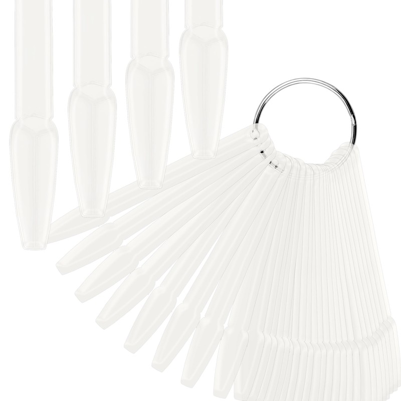 Pack of 50 Nail Tips Ballerina Nail Display Swatches with Iron Ring Nail Nail Nail Tip Art Display Set Nail Art Practice Tool Set Suit for Beginners Nail Salon Exercises (Natural)