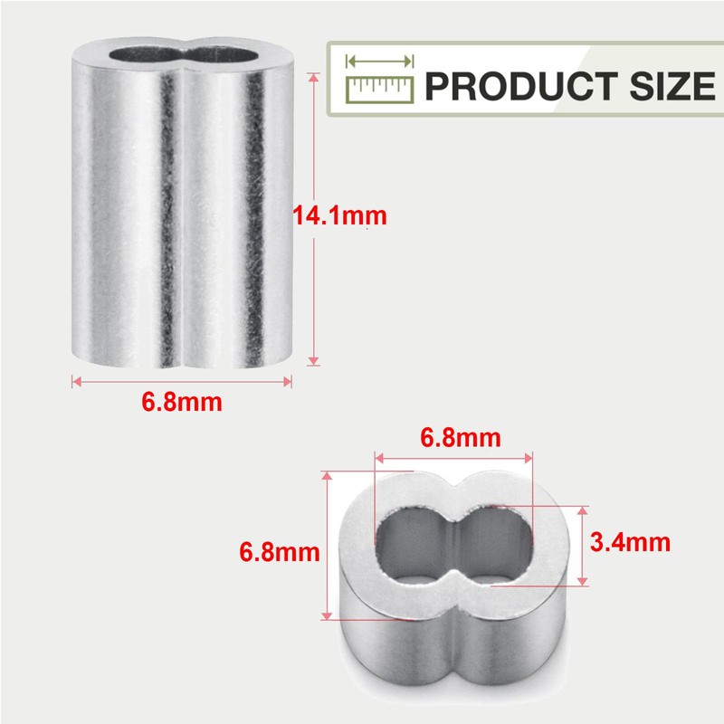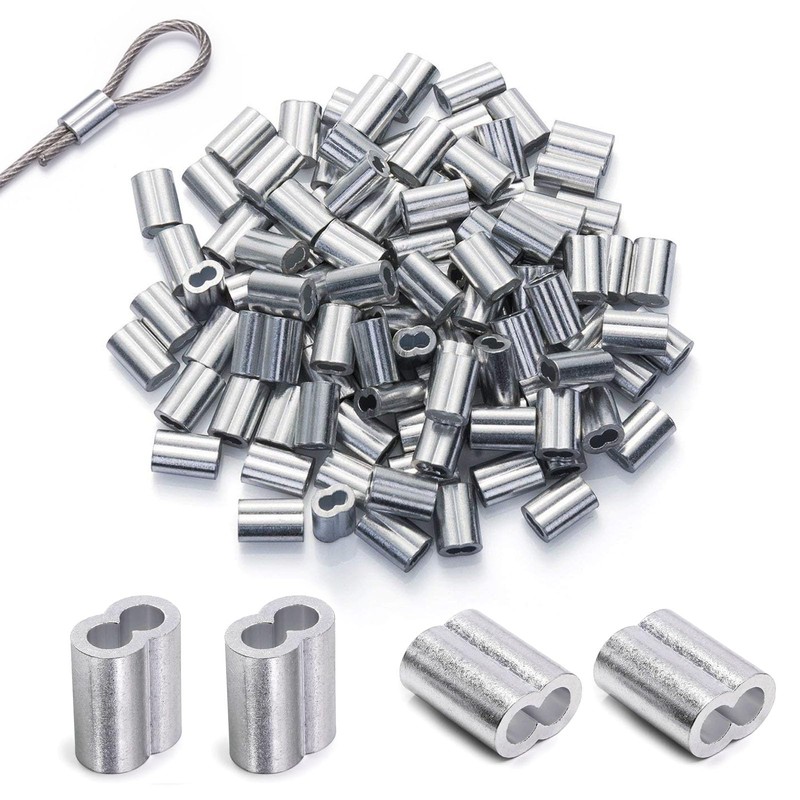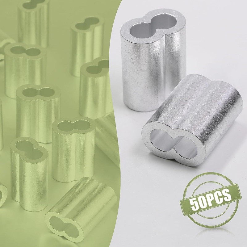 Pack of 50 Rope Clamps, Crimp Sleeves, Aluminium Crimping Loop, Preformed Aluminium Press Clamps, Wire Clamps, Double Sleeves for Rubber Rope, 8 mm Expander Rope, Choke Clamps (0.78 x 0.48 Inches)