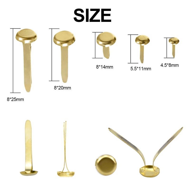 Pack of 500 Mini Brads Metal Round Head Clips Pattern Clips Paper Clasps for Card Making Scrapbooking DIY Handmade Crafts, Pattern Bag Clips Round Head for Crafts, 5 Different Sizes