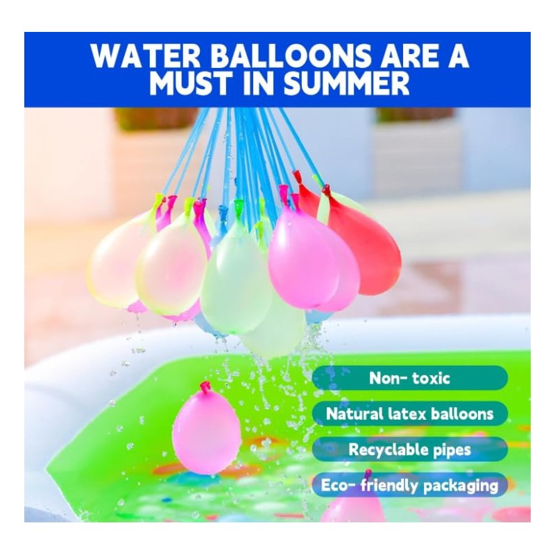 • Self-closing water bombs: you will receive 15 bundles of self-closing water bombs and 4 tap connectors, 37 water balloons per bundle (each bundle has mixed colours), a total of 555 colourful water balloons, a sufficient quantity to meet your entertainment needs.