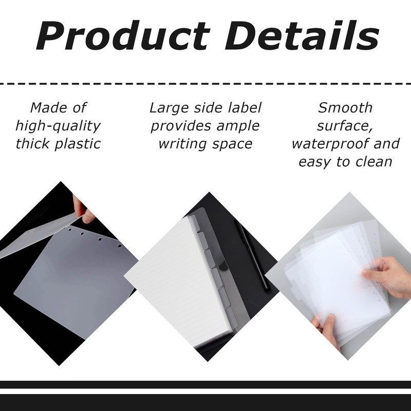 - Matte material: Our 6 A5 dividers are made of high-quality PP plastic, which is stable and thick, robust and not easy to break, waterproof and durable, with a transparent, white matte surface, exquisite workmanship and can be used without hesitation.
