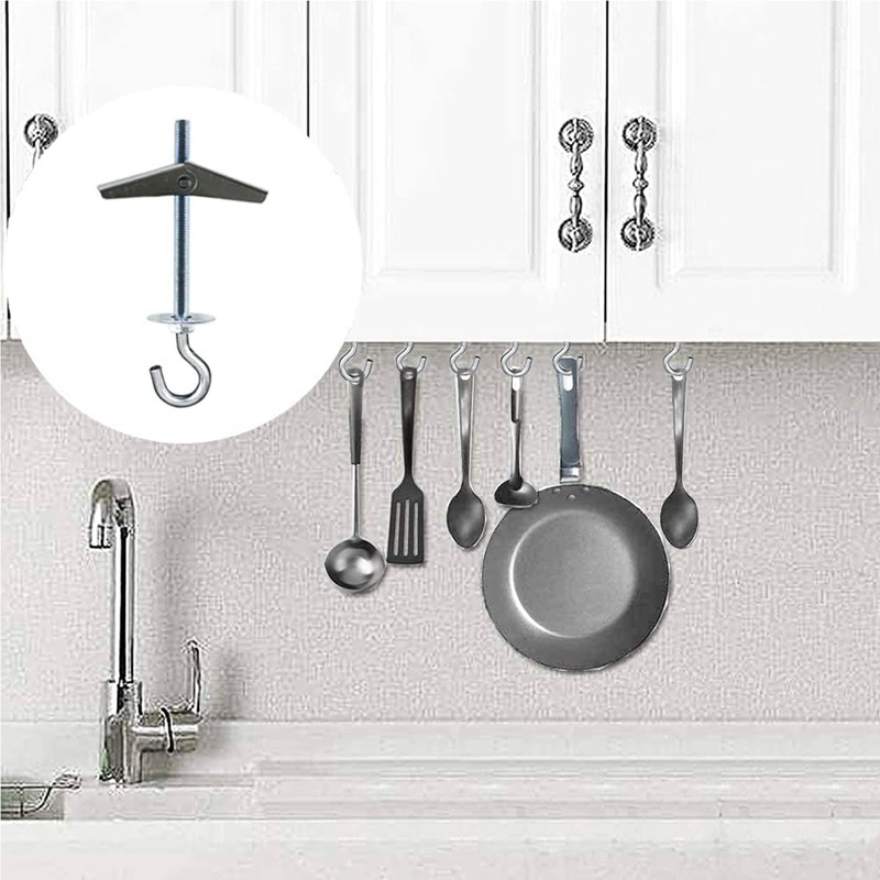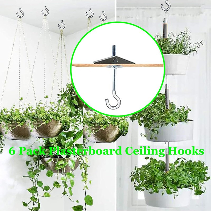 Pack of 6 carbon steel plasterboard ceiling hooks, screw hooks, swag hooks, plant hanging toggle hooks, kitchen hooks, cup hooks, ceiling installation, wall mounting