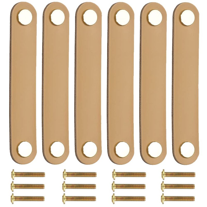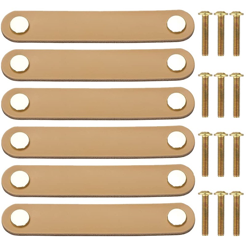 Pack of 6 Furniture Leather Handles, Drawer Leather Handle, Decorative Handle Made of Leather, Modern Furniture Leather Handle, Suitable for Kitchens, Bedrooms, Cupboards, Wardrobes, Drawers and Doors
