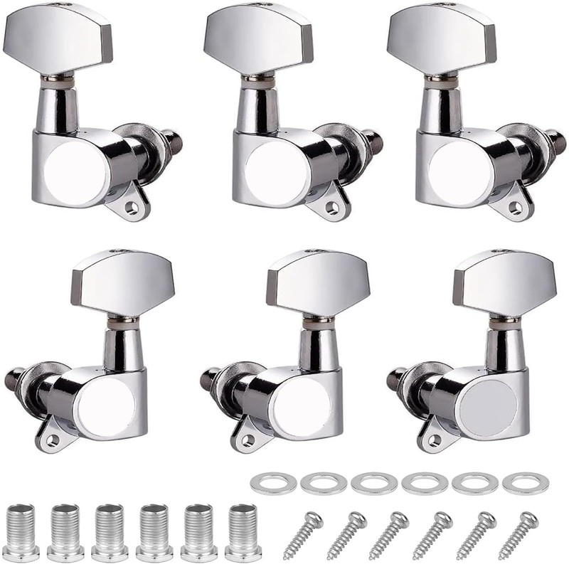 Pack of 6 Guitar Tuners, Guitar Tuning Pegs, Metal Mechanics Locking Key, 3L3R Guitar Tuning Key Peg for Electric Guitar (Silver)