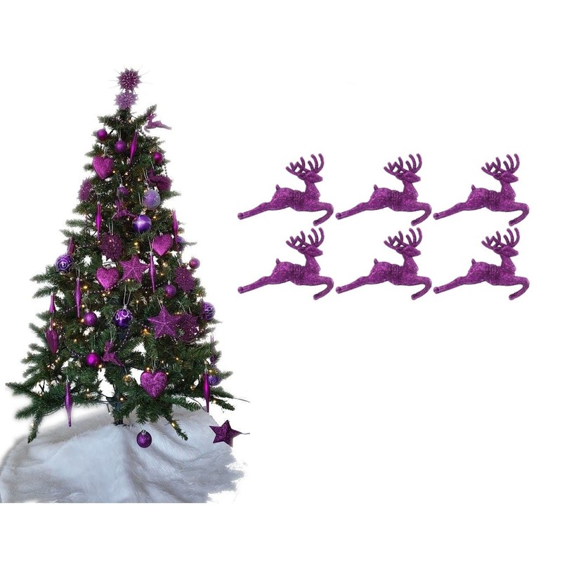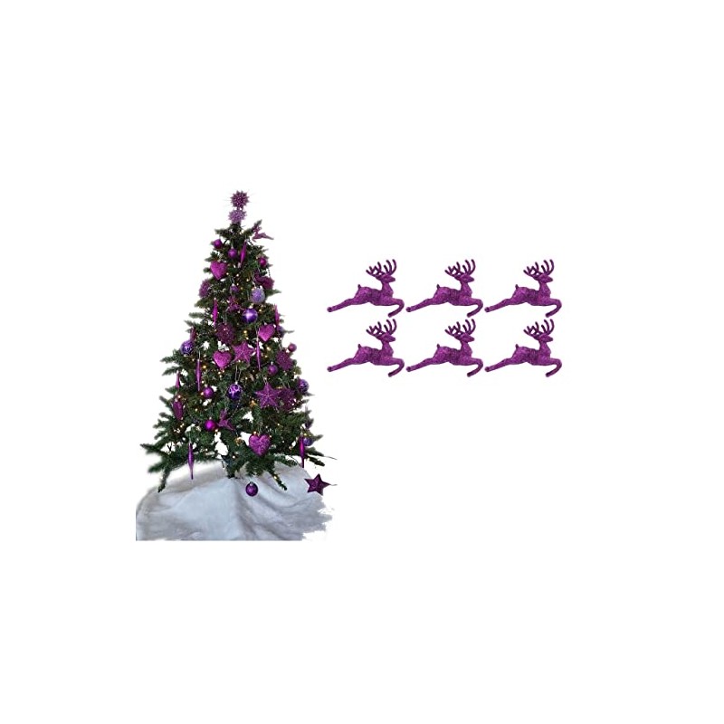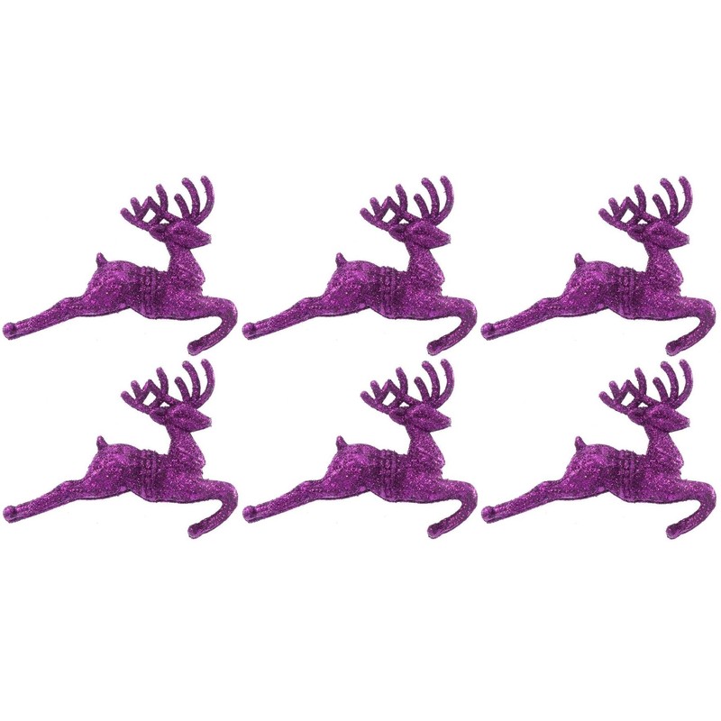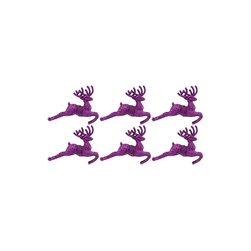 Pack of 6 - Hanging Glitter Reindeer Christmas Tree Decorations - 2.2cm x 9.5cm (Dark Purple)