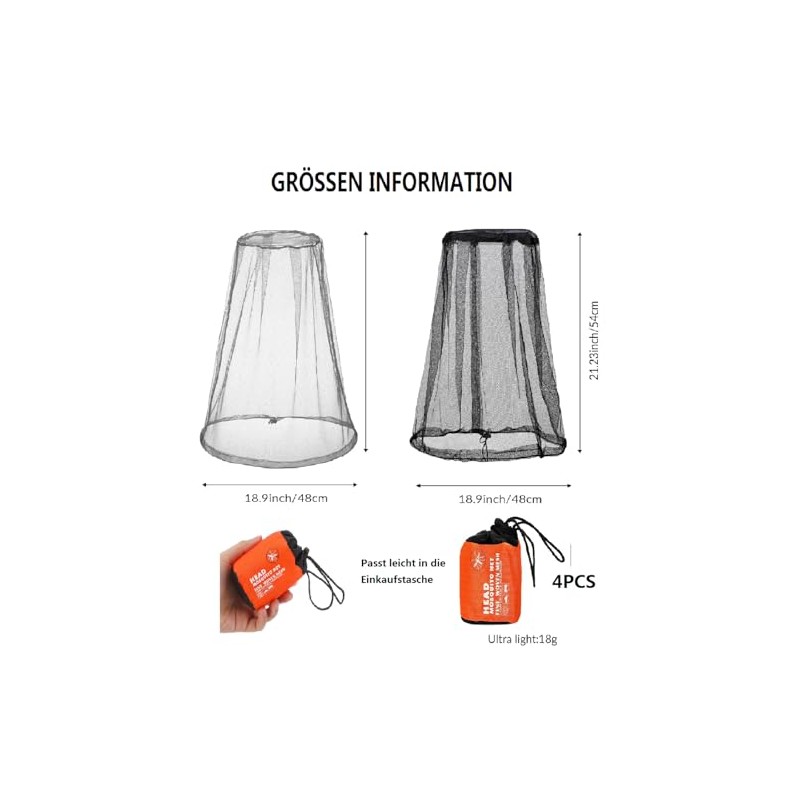 - Practical material: mosquito net head is made of polyester fibres with an elastic band at the bottom, the mesh opening is about 1.2 mm to harassment by various flying insects, correct air flow without hindering the line of sight. Also a great help when travelling. The fabric serves as a natural mosquito repellent, soft texture, easy to clean and reusable, good equipment for tropical travel and outdoor activities.