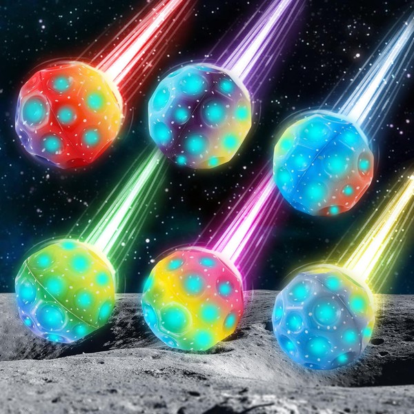 Pack of 6 Jump Glow Moon Ball, Light Moon Ball, Jumping Poles, Space Ball, Moon Ball, Super High Bouncing Bounciest Lightweight Foam Ballr, Party Bag Children's Birthday Party Favours