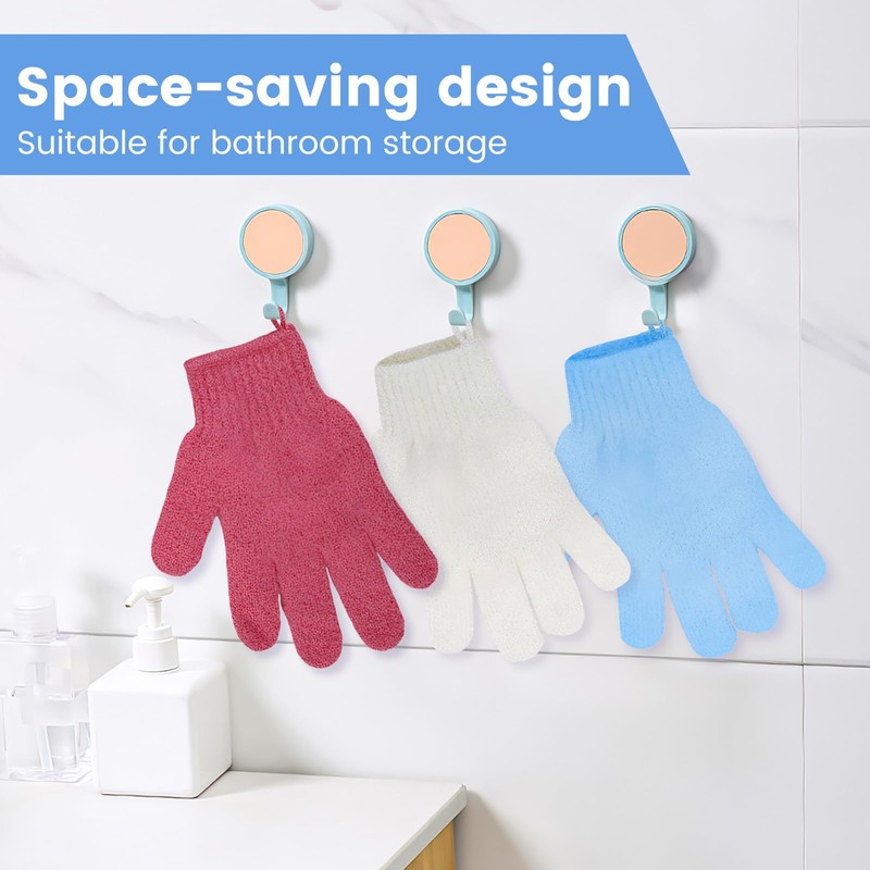 Pack of 6 Peelinghandschuh Waschhandschuh, Exfoliating Gloves Körper Duschhandschuh Massage Peeling Handschuh Handschuhe für Körper Und Gesicht mit Haken - Blau & Rot & Weiß