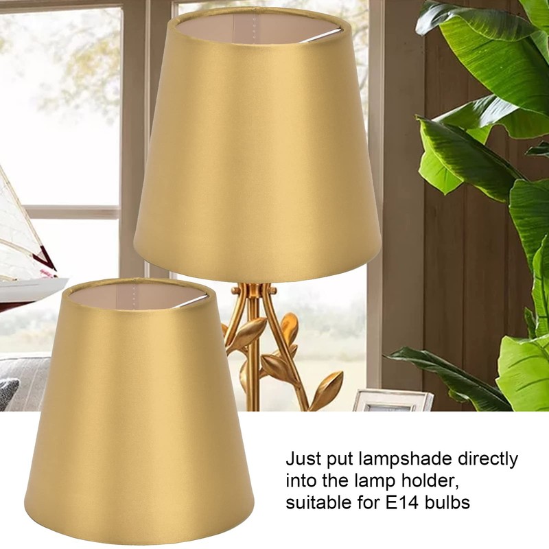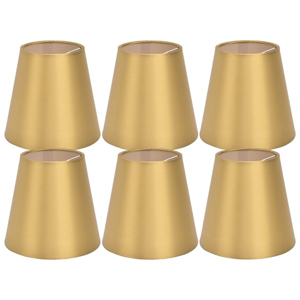 Pack of 6 Small Lampshades, Clip on E14 Incandescent Lampshades, Cylindrical Lampshade Replacement for Table, Wall, Ceiling Chandelier Lamps, 3.7 x 5.6 x 5.1 inches (Gold)