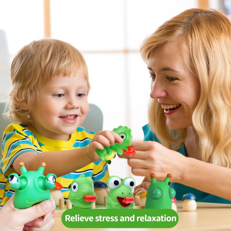 - Product design: when you press part of the little bug, the cute big eyes open, when you press the little frog and little dinosaur, you will see the funny and strange snapping of the tongue and hear a very relaxing and pleasant sound