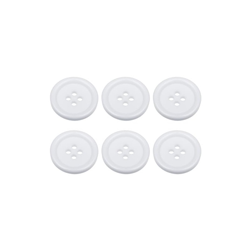 Pack of 6 White Sew on 20mm Round Buttons Flat 4 Holes 32L 32 Ligne