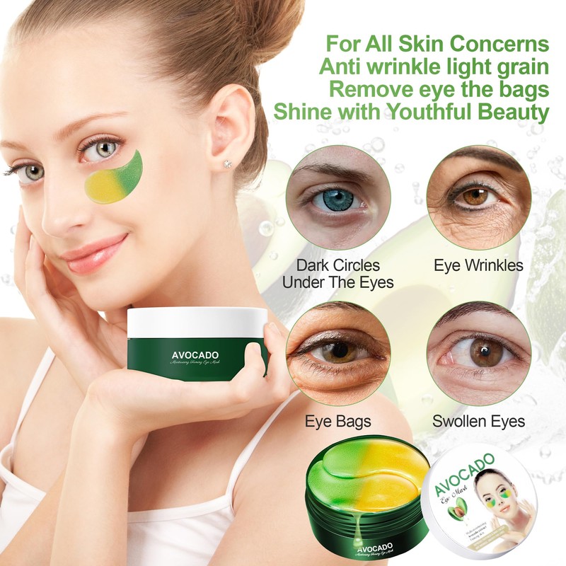 Pack of 60 eye pads, avocado eye pads against dark circles, hyaluronic acid eye mask, remove dark circles, eye bags, wrinkles, puffiness, eye pads with avocado extract, moisturising eye mask