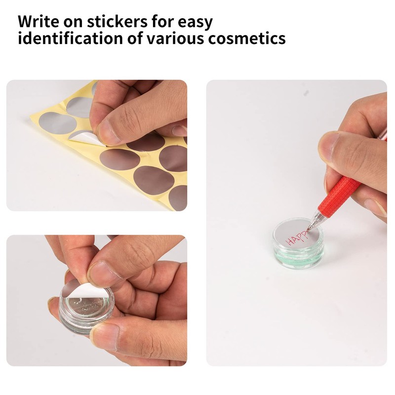 - Package includes: 70 pieces 5 ml cream jars, 80 pieces 25 mm/1 inch diameter stickers, 6 pieces spatulas, 1 piece 15 ml spray bottle