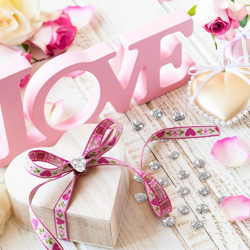 Pack of 70 Glitter Heart Shaped Silver Gemstones, Flat Back, Heart Decorations, Resin, Rhinestones for Crafts, Crystal, Stick-on Gemstones, Invitation Decoration, 0.47 Inches