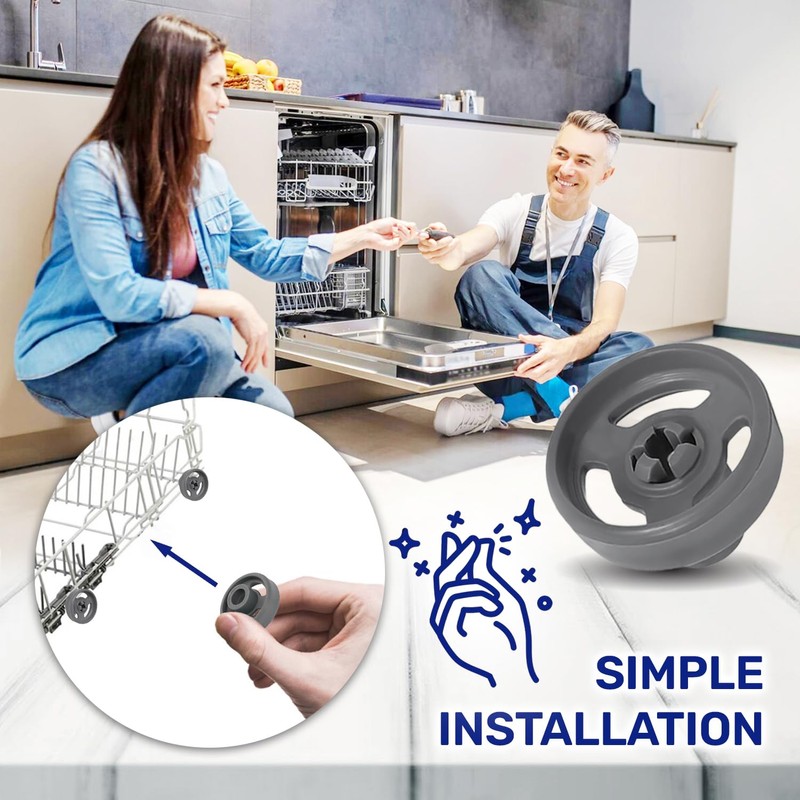 - No tools are required for mounting dishwasher rollers. In just a few minutes, the old rollers can be removed and new ones can be installed by pressing on the roller.