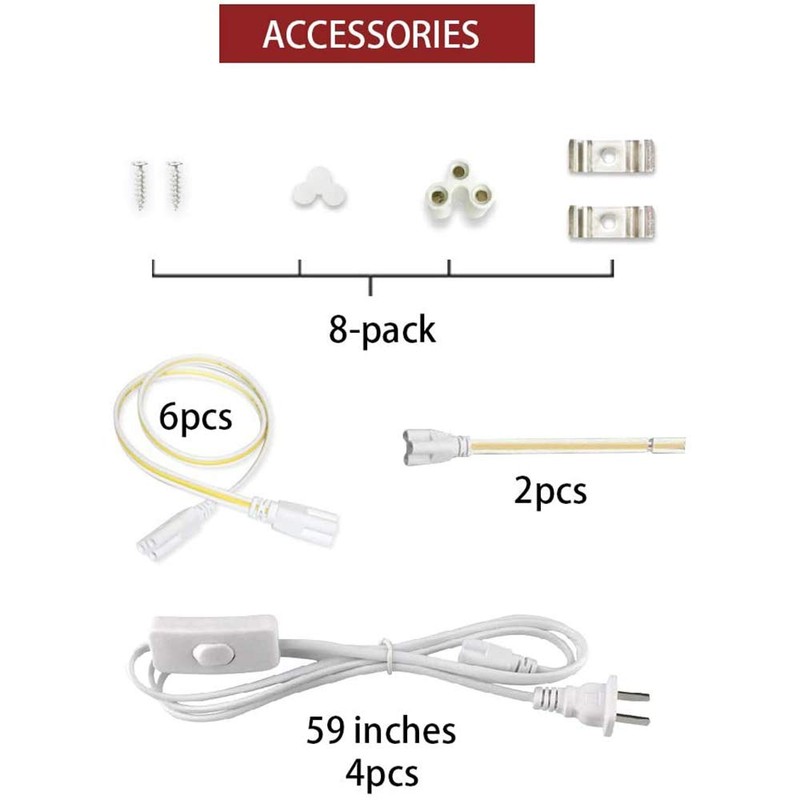 - Linkable - Extendable design, these under cabinet led lights for kitchen could connect up to less than 8 tube lights together with seamless connectors or 20 inches connector cords