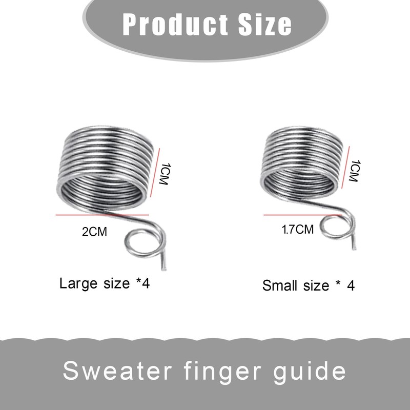 - Ergonomic design for maximum comfort: with the dimensions 2 x 1 cm (large) and 1.7 x 1 cm (small), the knitting aid rings fit comfortably to most fingers. The lightweight, compact design is ideal for extended use without feeling pressure or friction.