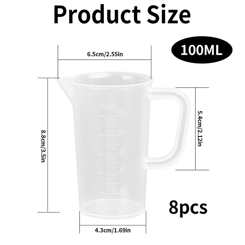 - Clear scale design: measuring cup ml has a clear scale and transparent design with a capacity of 100 ml, you can see the contents inside and easily add, measure and adjust the liquid capacity