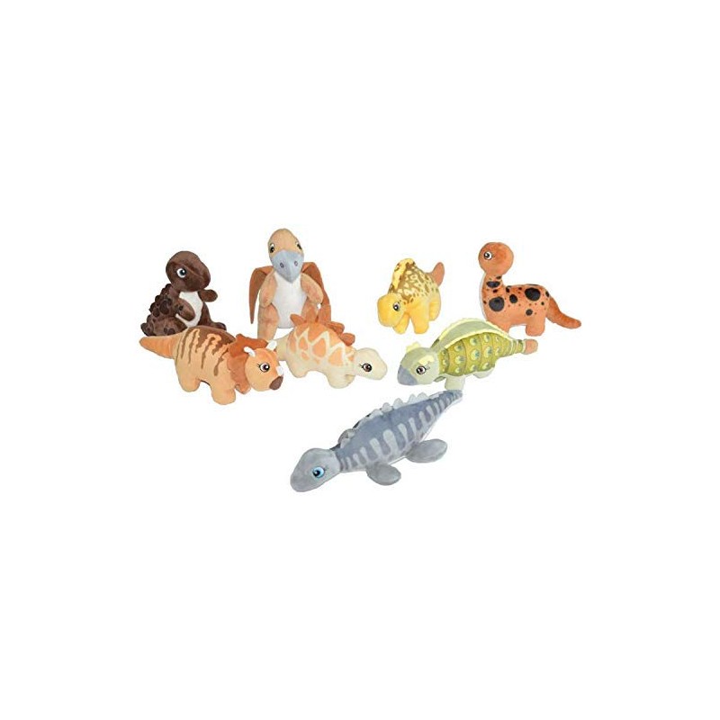 - Box contents: pack of 8 plush dinosaurs, colourful and natural colours
