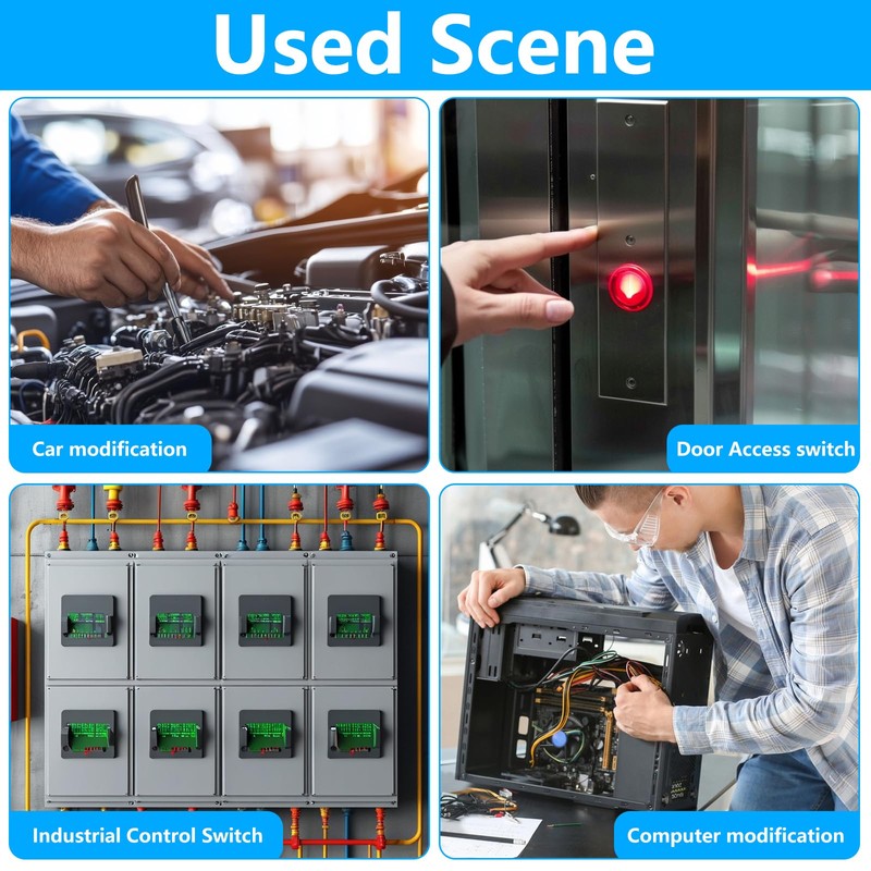 - Momentary switch type: Momentary switch: Press and hold to turn on, release to turn off. Easy to install and remove, just tighten the screws at the bottom of the button