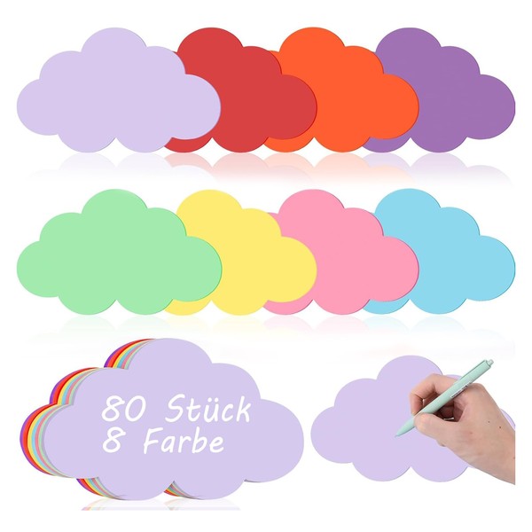 Pack of 80 Presentation Cards Cloud 14 x 23 cm Presentation Cards 8 Colours Colourful Metaplan Cards Flip Chart Paper Metaplan Cards Set Flashcards for Office Lecture Professional Presentation School