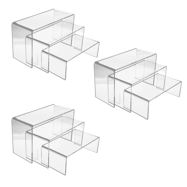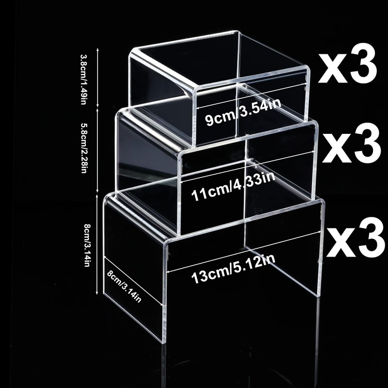 Pack of 9 Acrylic Display Stands, Acrylic Shelf in 3 Sizes, Multi-Tier Display Shelf, for Jewellery, Cupcake, Collectibles, Desserts