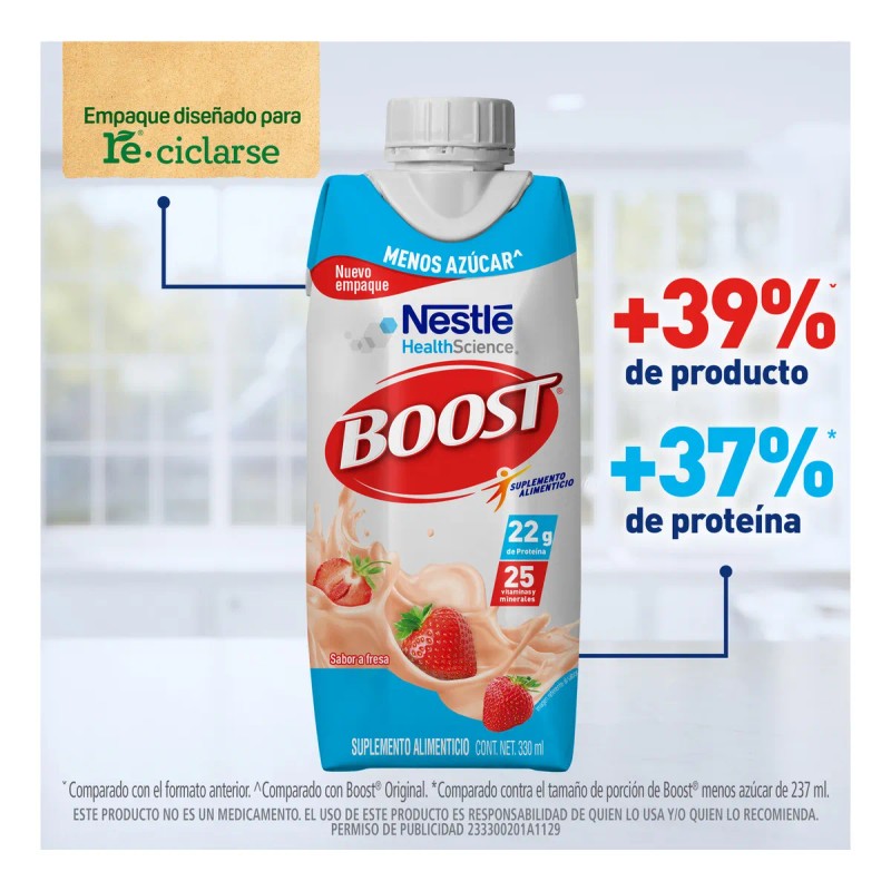 Pack X12 Cajas De Suplemento Boost Menos Azúcar Fresa 330ml