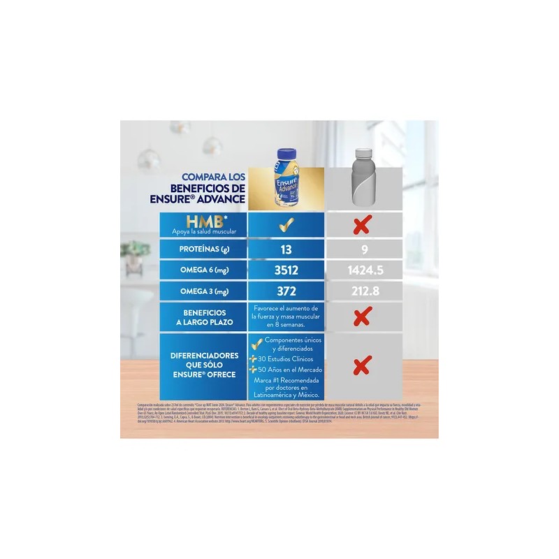 El Pack de 16 botellas de Ensure Advance sabor vainilla es la opción perfecta para quienes necesitan una nutrición completa, práctica y lista para tomar. Diseñado para adultos mayores, personas activas o en recuperación, su fórmula con HMB, proteínas de alta calidad, calcio y 28 vitaminas y minerales, ayuda a mantener la masa muscular, fortalecer el sistema inmune y aportar energía diaria.
