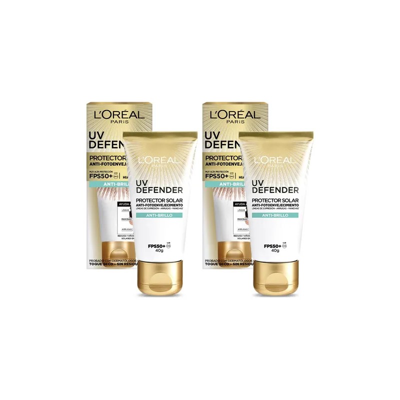 Pack X2 Unidades Protector Solar Facial Antibrillo Fps 50 Uv Defender