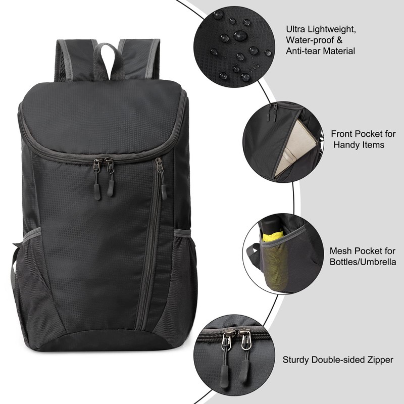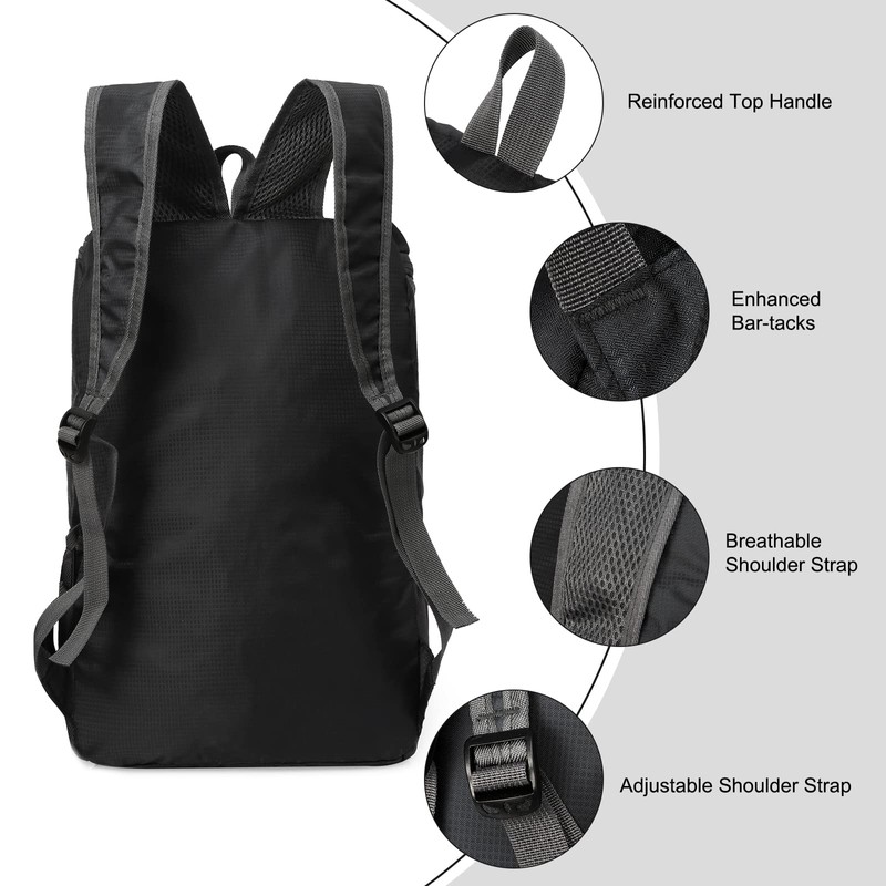 Features with adjustable padded shoulder strap durabel double-sided zipper, designed for long-term use. High-quality parts ensure this packable backpack’s long run proformance. No worry for tear and wear. This foldable backpack will certainly brings you a better experience when carrying it around.