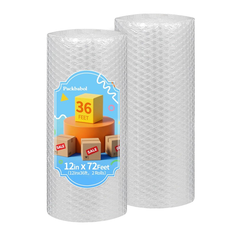 packbabol Bubble Cushioning Wrap Rolls, ProtectivePackaging Material, Bubble Moving Wrap for PackingMoving Supplies,Small business,2 Pack (12"x72')