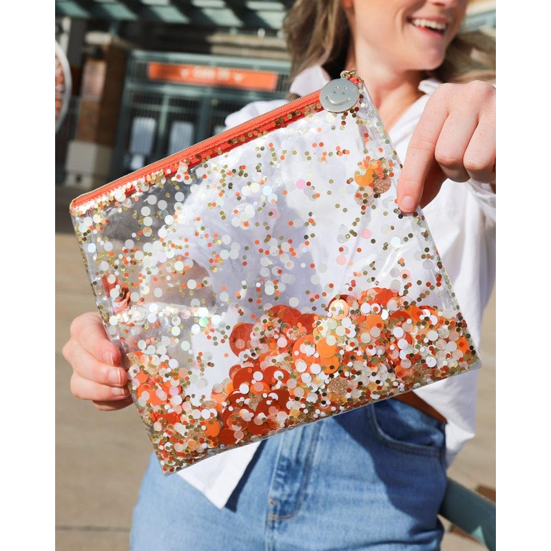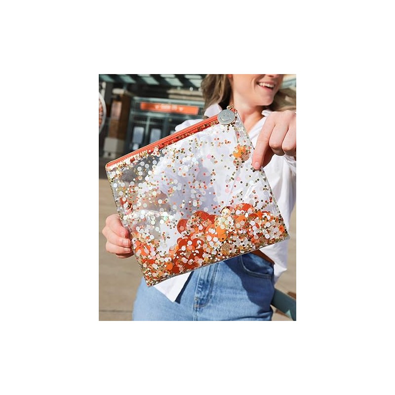 Packed Party Spirit Squad Confetti Everything Pouch, Makeup Bag, Travel Bag,Cosmetic Bag for Women (Orange Burst)