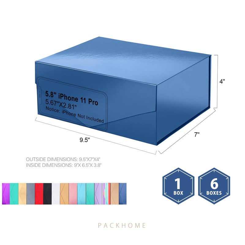 PACKHOME 6 Gift Boxes 9x6.5x3.8 Inches, Groomsman Boxes, Rectangle Collapsible Boxes with Magnetic Lids for Gift Packaging (Glossy Navy)