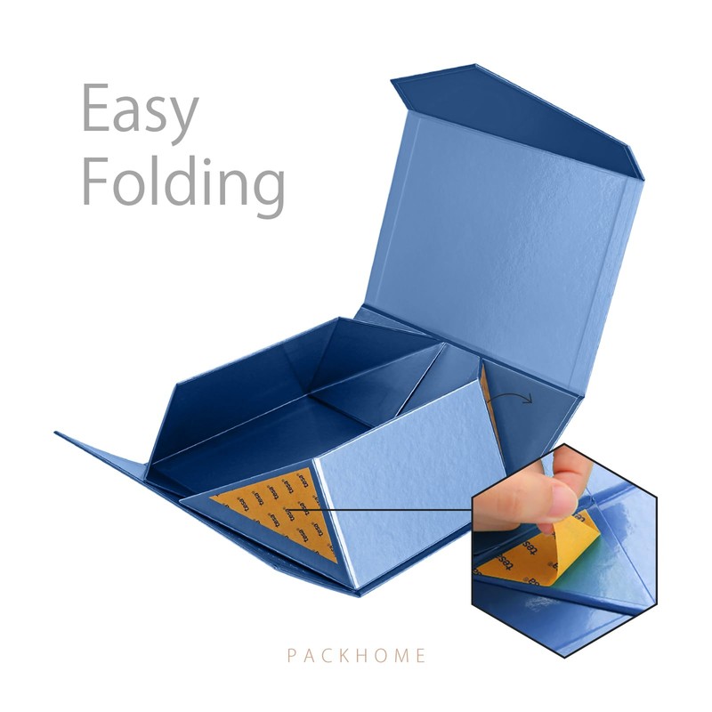 - High Quality: The collapsible gift box is made from high-quality hardboard. Sturdy gift box with lid has a glossy navy finish with a V-shape flap. The tape used is from Tesa Germany