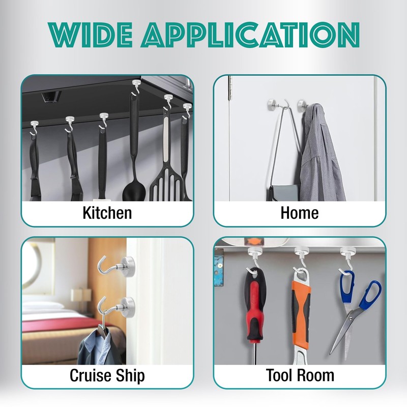 - SUPER STRONG & RELIABLE - Built with high-powered neodymium magnets, these heavy duty magnet hooks securely attach to flat metal surfaces, making them suitable for home, office, garage, or as a cruise must have.