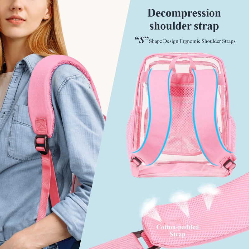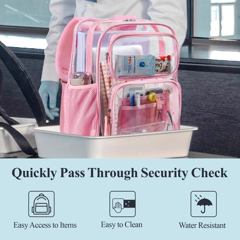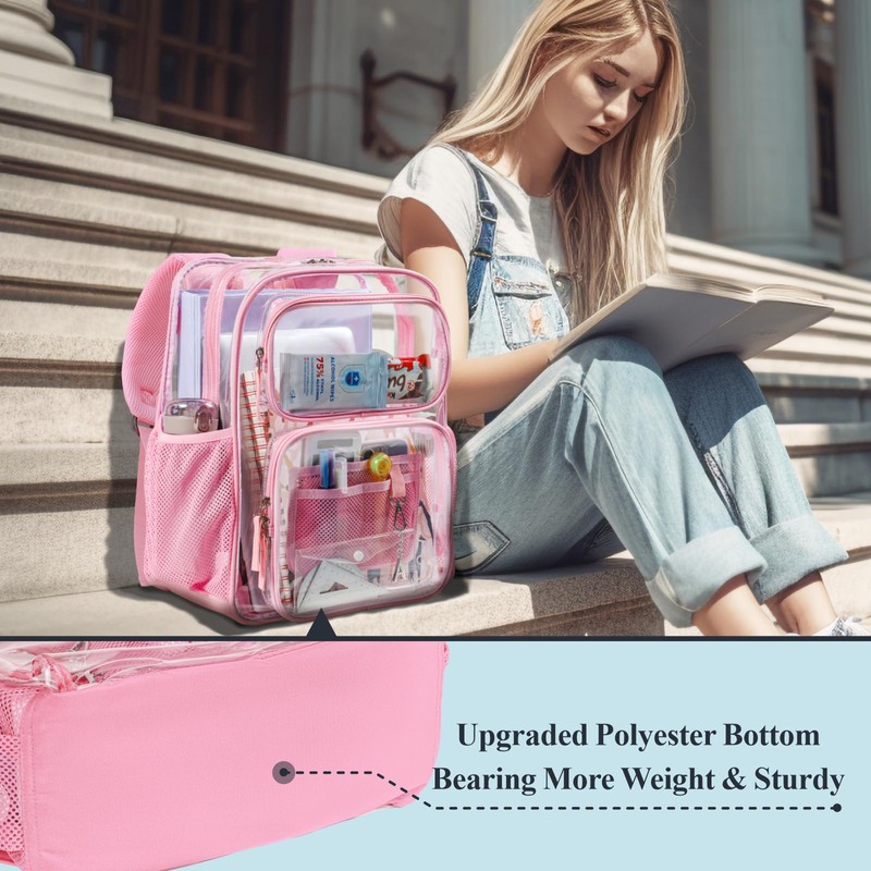 • Back-to-School Approved Clear Backpack: This see-through clear backpack for school meets school clear bag policies, making security checks a breeze. Easily spot your belongings without digging—streamlining the process for quicker access.