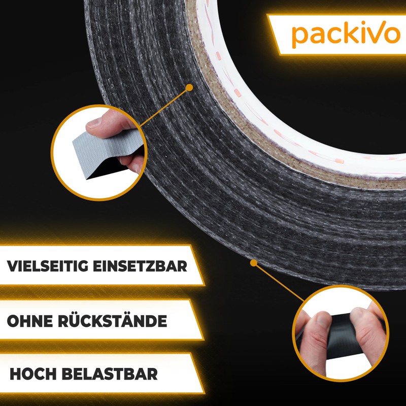 Packivo Duct Tape Black - 1 Roll 50 m x 50 mm Fabric Tape Duct Tape Extra Ultra Strong Wide Black Tape Waterproof Duct Tape Fabric Tape for Indoor and Outdoor Use